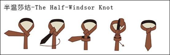 2.半溫莎結(jié)是一個(gè)形狀對(duì)稱的領(lǐng)帶結(jié),它比普瑞特結(jié)略大而比溫莎結(jié)小。